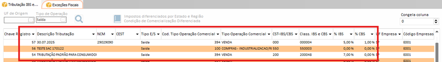 Nesta etapa, adicionamos os campos necessários para classificação de CFOP (remessas, transferências, amostras e operações sem incidência dos novos impostos) no cadastro de CFOP e nas telas de Exceções Fiscais.