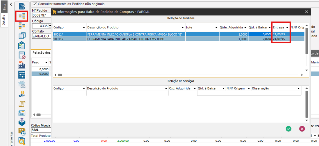 A partir da versão 8.57.2.0, ao clicar na opção de “Desmembrar Pedidos” no módulo de Compras, você pode efetuar os filtros usando a data de entrega do item.